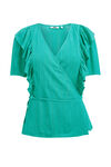 Top regular fit de mélange de viscose à fils pailletés. Modèle portefeuille à col en V, manches courtes et ruchés sur le côté.