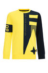 T-shirt de coton regular fit à application. Modèle à col rond et manches longues.
