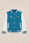 Prêt à marquer des points ! Ce blouson d’aviateur de lycée avec manches en similicuir, bordures côtelées et broderies sur la poitrine et le dos a le look authentique d'une équipe universitaire. La veste idéale pour tous les jours.