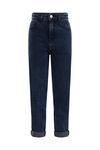 Jeans high rise tapered de mélange de coton avec stretch ajouté à élastique ajustable à la taille. Modèle à fermeture éclair et boutonnée, deux poches fendues devant, une poche ticket, et deux poches passepoilées derrière et jambes en fuseau. Jusqu'à la taille 128, la fermeture se ferme avec un crochet.