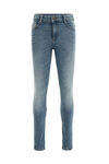 Jean Blue Ridge skinny fit de coton denim avec stretch ajouté. Modèle 5 poches à fermeture éclair et boutonnée, taille élastiquée ajustable, coupe ajustée et jambes très étroites. Quand les jambes du pantalon sont retournées, on aperçoit un galon. Jusqu'à la taille 128, la fermeture se ferme avec un crochet.