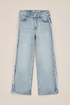 Pour un look cool. Fabriqué en 100 % coton, ce jean 5 poches à coupe relaxed fit et à jambe évasée est idéal pour un look décontracté et tendance. Il présente un motif à rayures et se ferme par une fermeture éclair et boutonnée.
