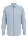 Chemise slim fit de mélange de lin à fermeture boutonnée. Modèle à col kent et manches longues.