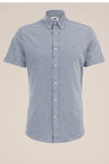 Chemise slim fit de mélange de coton à col boutonné, manches courtes, fermeture boutonnée, avec notre signature sur la poitrine : l'hirondelle brodée.