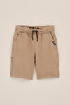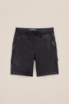 Possède une coupe regular fit, des jambes étroites, 5 poches et taille élastiquée avec cordons de serrage. Il a un aspect délavé et une fausse braguette.