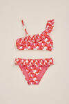 La natation avec une touche d'originalité ! Fabriqué à partir d'un mélange de polyamide recyclé, ce bikini présente une encolure inclinée avec des volants et un design semi-off-shoulder. Prêt à affronter les vagues.