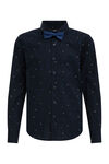 Chemise regular fit de mélange de coton à motif, poche poitrine et fermeture boutonnée. Modèle à col classique, nœud papillon amovible et manches longues.