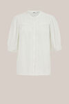Léger, sophistiqué et plein de détails subtils. Ce chemisier présente une coupe regular fit, un col mao et des manches courtes, avec une fermeture boutonnée et de fines broderies le long de la fermeture et des poignets des manches pour une touche finale élégante.