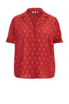 Découvrez une classe intemporelle avec cette blouse en viscose regular fit. Avec un motif chic, une fermeture boutonnée pratique, un col en V élégant et des manches courtes confortables pour un look élégant sans effort.