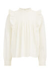 Un charmant chemisier regular fit aux volants aériens. La fermeture boutonnée au niveau du col, le col rond à ruchés et le coton structuré en font un article favori intemporel.
