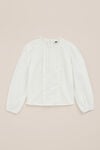 Prête à briller ! Ce chemisier 100 % coton présente des volants, des plis et une bordure subtile à l'encolure. Avec des manches longues et des poignets élastiques, et une fermeture à un seul bouton dans le dos, il est parfait pour toutes les aventures.