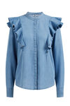 Chemisier regular fit de lyocell à look denim, volant et fermeture boutonnée invisible. Modèle à col Mao et manches longues.