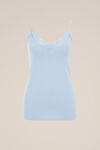 Débardeur ajusté de coton, à col en V en dentelle et bretelles spaghettis ajustables.