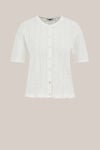 Aéré et élégant en un seul look. Cette veste tricotée a une coupe regular fit, un col rond et des manches courtes. Elle est entièrement ajourée et finie avec une fermeture à bouton pour une touche raffinée et féminine.