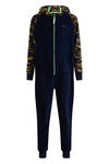 Grenouillère regular fit de qualité polaire à motif et capuchon. Modèle à fermeture éclair, deux poche devant, manches longues à bords côtelés et jambes longues à bords côtelés.