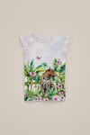 Pour les vrais amoureux des animaux ! Ce haut sans manches a une coupe regular fit, une encolure ronde, des volants ludiques aux épaules et un imprimé amusant d'animaux de la jungle et de safari.