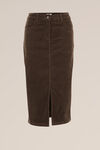 Créez un look élégant en un instant. Cette jupe ajustée en velours côtelé est dotée d'une fermeture boutonnée et éclair, d'une fente centrale, de deux poches fendues et de poches arrière. Cet article est facile à styliser et mérite certainement une place dans votre garde-robe. La jupe tombe sous le genou.
