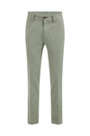 Pantalon slim fit de qualité tissée avec stretch ajouté et motif pied-de-poule. Modèle à fermeture éclair, bouton, agrafe et oeillet, deux poches fendues devant et deux poches passepoilées à fermeture boutonnée derrière.