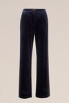 Sortez avec style ! Ce pantalon regular fit en tissu velours avec stretch ajouté possède des jambes évasées, deux poches latérales, des poches passepoilées, ainsi qu'une fermeture à crochet, bouton et zip. Pour ces moments où tu veux être chic sans sacrifier le confort.