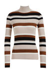 Pull regular fit de jersey de mélange de viscose Livaeco à rayures et fils pailletés. Modèle à col droit et manches longues.