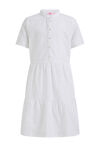 Robe de coton regular fit à broderie anglaise, détails plissés et fermeture boutonnée. Modèle à col rond et manches longues.