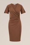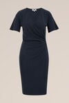 Une élégance sans faille. Cette robe courte et ajustée présente une encolure enveloppante et des manches courtes. Le détail plissé à la taille crée une belle coupe et une allure élégante.