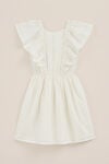 La robe a une coupe regular fit, une encolure ronde et n’a pas de manches. Elle possède des bretelles élastiques avec des volants qui tombent sur l'épaule. Cela se poursuit vers le bas sur la partie supérieure de la face avant. La taille est élastiquée et la partie inférieure est dotée d'un jupon. Avec un petit nœud dans le dos, c'est une robe de soirée. En coton mélangé.