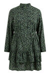 Robe de pure viscose regular fit à motif et ceinture à nouer. Modèle court à col rond avec ruchés, fermeture boutonnée et manches longues.