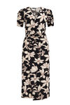 Robe regular fit de qualité tissée à motif et détail de bouton. Modèle à col à revers et manches courtes. Modèle avec fente devant et tombant sous le genou.