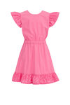 Cette robe en coton fait battre le cœur de nombreuses jeunes filles. Et pour cause, le détail ludique du dos ouvert et les jolis volants de la jupe lui confèrent un look super festif et tendance. Un col rond et des manches courtes complètent la robe.