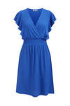 Robe regular fit de mélange de polyester recyclé à structure et ruchés. Modèle à col en V, manches courtes et ceinture élastique. La robe tombe jusqu'au genou.
