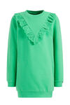 Robe en sweater regular fit de mélange de coton à broderie anglaise en V et bords côtelés. Modèle à col rond et manches longues.