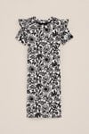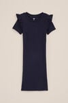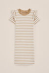 Laissez les enfants rayonner ! Cette robe regular fit de mélange de coton a un motif à rayures avec un motif côtelé. L'article présente également un col rond et des manches courtes. Des volants complètent ce joyeux article incontournable.