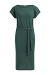 Robe midi regular fit de qualité jersey à motif pointelle. Modèle à col rond, manches courtes, ceinture amovible et deux petites fentes latérales. Doublé.