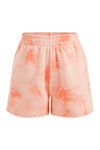 Short loose fit de mélange de coton à motif tie-dye, ceinture élastique à cordons et poches fendues. Texte appliqué sur la jambe gauche.