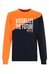 Sweat-shirt regular fit de mélange de coton à application et bloc de couleur. Modèle à col rond et manches longues.