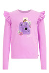 T-shirt ajusté de mélange de coton à application et ruchés. Modèle à col rond et manches longues.