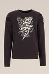 Remplissez la garde-robe des enfants avec style. Ce T-shirt regular fit est fait d'un mélange de coton confortable. Avec son imprimé tendance, son col rond et ses manches longues ornées de plis, cette pièce est un incontournable absolu des fashionistas en herbe.
