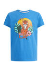 T-shirt de coupe régulière en coton mélangé avec un imprimé et une broderie. Le modèle a un col rond et des manches courtes.