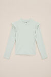 Brillez et scintillez toute la journée. Ce T-shirt coupe slim fit présente des fils pailletés argentés et des volants sur les épaules. Avec des manches longues pour plus de chaleur et un look élégant, parfait pour l'école ou une fête.