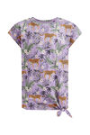 T-shirt loose fit de mélange de coton à motif sur toute la surface, broderie sur la poitrine et détail de bouton dans le bas. Modèle à col rond et manches courtes.