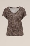 Créez un look élégant en un instant. Ce T-shirt à la coupe regular fit présente une encolure en V et des motifs. Cet article est facile à styliser et mérite certainement une place dans votre garde-robe.
