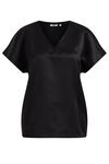 Top regular fit de qualité tissée à aspect brillant. Modèle à col en V et manches courtes.