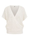 Ce top regular fit est confectionné en coton et présente un motif ajouré, un col cache-cœur et des manches courtes.