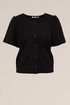 Plus de volume ? Pas de problème. Ce top vaporeux à manches courtes ballon donne littéralement du corps à votre tenue. Le col en V et la fermeture boutonnée ludique attirent tous les regards, tandis que le mélange de stretch garantit une coupe confortable.