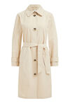 Manteau long de mélange de coton à col classique, fermeture boutonnée et ceinture amovible. Modèle à deux poches fendues, une fermeture à boucle aux poignets et un pli derrière.