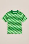 Un ajout lumineux à chaque jour. Ce T-shirt 100% coton à la coupe regular fit présente des manches courtes et un col rond côtelé, ainsi qu'un imprimé amusant sur toute la surface qui attire immédiatement le regard.