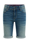 Short denim Blue Ridge 5 poches de mélange de coton légèrement délavé. Modèle à fermeture éclair et boutonnée, jambes courtes à revers piqués et taille normale à élastique ajustable. Jusqu'à la taille 128, la fermeture se ferme avec un crochet.