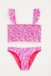 Bikini entièrement doublé à motif sur toute la surface. Le haut et le slip ont des smocks.