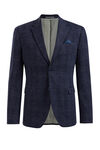 Blazer slim fit de mélange de coton à motif et jersey stretch ajouté. Modèle poches à rabat devant, poche poitrine dont on peut utiliser la doublure comme pochette et deux poches intérieures.